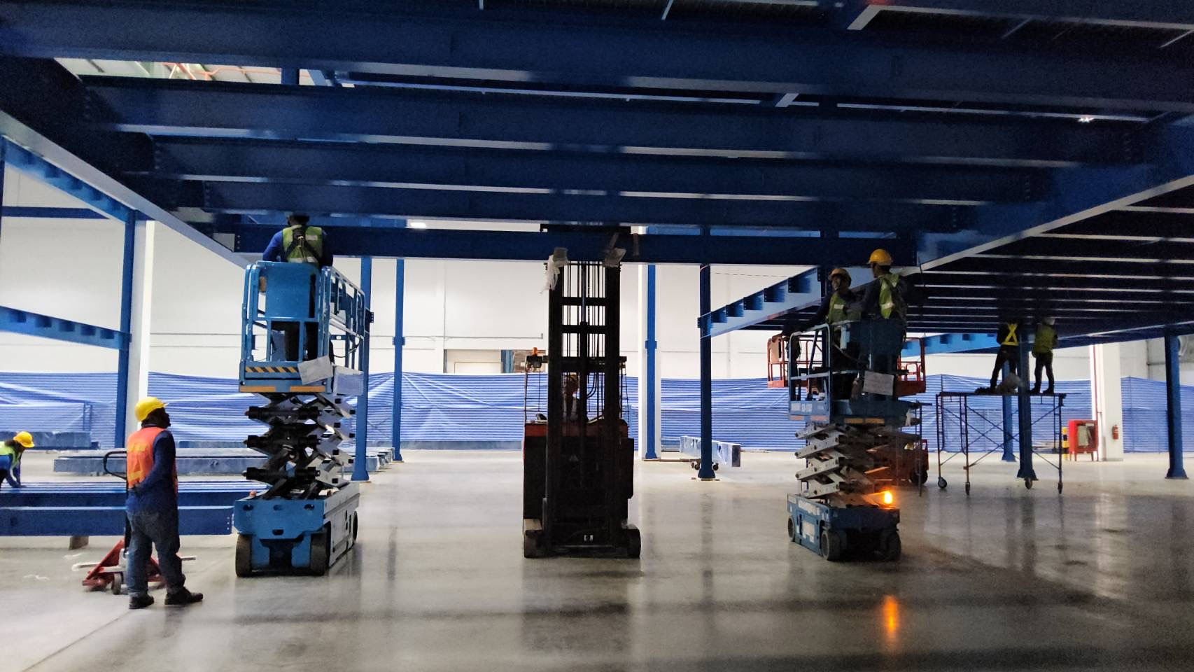 งานติดตั้งคานรับพื้น และระบบพื้นชั้นลอยภายในอาคารโรงงาน